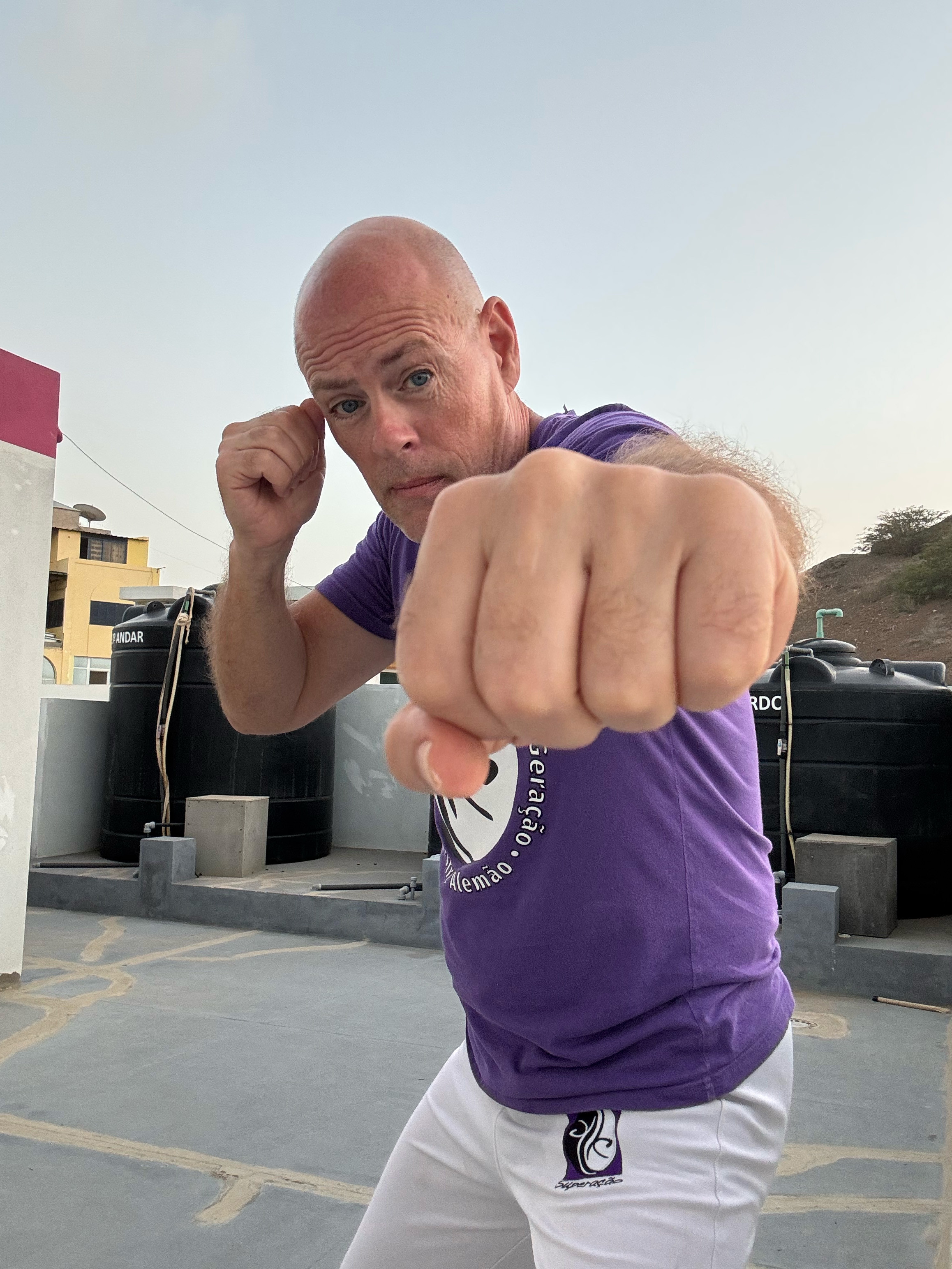 Mestre Alemão leads this dual modality course with 4 hours of in person teaching, pairing up students to practice with active resistance. Online workouts and teachings supplement the course.